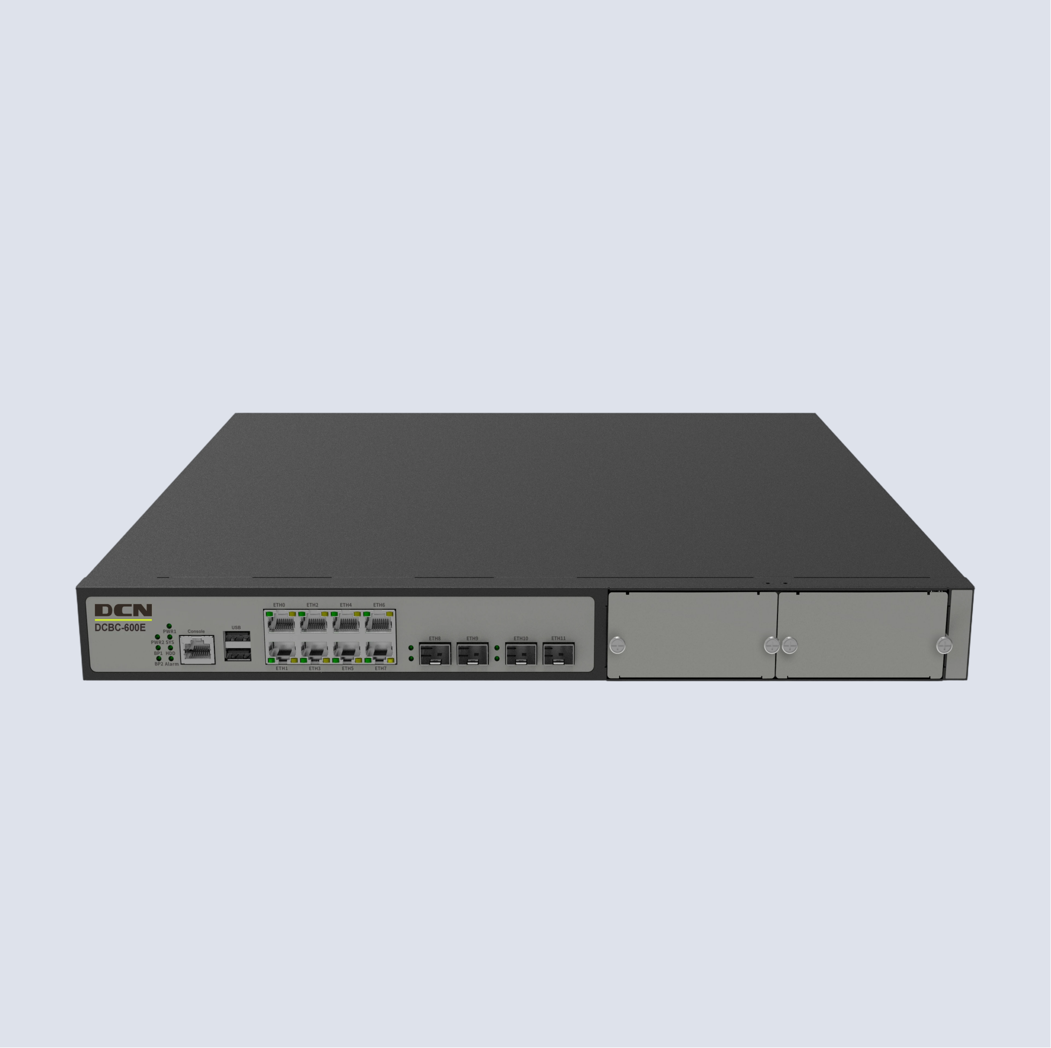 DCBC-600E 8个千兆电接口,2个千兆光接口,2个万光兆接口,2扩,1U高度,19寸机箱,标配1T硬盘,2组bypass,标配双电源,600M审计带宽;